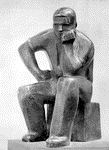 Az "Ülő munkás" szobra Goldmann György forradalmi mondanivalójú kisplasztikáinak sorába tartozik. Az alacsony, négyszögletes zsámolyon terpeszben ülő, erőteljes fiatal férfi jobbját csípőjén nyugtatja, bal kezére könyököl, jobb lábát hátrább húzva tartja. A gondolat és tett egysége fejeződik ki e szoborban. Kis mérete mellett is monumentalitás jellemzi. Nemcsak egy bizonyos munkást ábrázol, de típusában a munkásosztály képviselőjét jeleníti meg. Sima, nagy felületek, erőteljes mértani formák, tömbszerű ritmusok a meghatározói e műnek. A realista előadás mértani szerkesztéssel párosul, a zárt plasztikai felületek öblös kivágásokkal váltakoznak. Hihetetlen erő, elszántság, küzdeni akarás, komoly megfontoltság, biztonság hordozója az "Ülő munkás". |