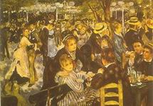 1869-től Monet-val dolgozott együtt Párizs környékén, a Szajna-parton, majd Argenteuilben. Itt alakította ki impresszionista stílusát. Különösen a kedvelt kirándulóhely, La Grenouilliére környékét és idilli motívumait jelenítette meg, így például a Tánc Moulin de la Galetteben c. 1876-ban készült festményén. A figurák körvonala fölolvad a mindent átfogó atmoszféra lüktetésében; színes kavargás, vibrálás, a fényárnyék-foltok ritmusa, reflexek játéka jellemzi e képeket, és mindenekfelett az önfeledt derű. A rózsaszín arcon lila és kék ecsetvonások, a formák puhán olvadnak össze, minden mozog és tovaillan. A kompozíció erővonalait, a teret építő tömegeket hiába keresnénk, csupán a csoportosítás lüktetése utal a képépítő szándékra. A néző szeme, a festőéhez hasonlóan, önfeledten merül el a színek, fények kavargó lüktetésében. Az 1880-as évektől kezdve érdeklődése előterébe a női aktok kerültek, melyeket gyakran fürdés közben ábrázolt lágy, rózsás tónusokban (Női akt napsütésben). Lenyűgözte a fénynek a bőrön való játéka. Az impresszionizmus festői között Renoir volt a legelomlóbb, aki a részletszépségekért kockára tette az egész hatását. A lágy reflexek, a puha körvonalak és összemosódó formák jellemezték a többnyire lágy, harmatos leányokat és asszonyokat ábrázoló képeit, amelyekben Boucher kacér aktsorozatának a folytatója, természetesen azzal a különbséggel, hogy ösztönösen felhasznált minden technikai újítást, amelyet az impresszionista festési mód nyújtott. Milaire-Germain-Edgar Degas Degas "a modern élet klasszikus festője" akart lenni. Mindvégig küzdött benne a kettős vonzás: a klasszikus, múzeumi művészet utáni vágy és a modern élet lüktetése, a pillanatnyi mozgás ezernyi izgalma.