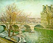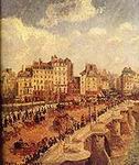 Pissarro hosszú és termékeny életútja során többször is változtatta piktúráját. Az 1863 körüli Varenne-de-St. Hilaire zöldellő táját még egyenletesen világítja meg a nyári nap, akadálytalanul érvényesülnek a helyi színek - születőben van az impresszionizmus. A Pont-Neuf, Párizs legrégebbi hídjáról a festmény 1902-ben, a művész halála előtti évben készült. Párizs legősibb hídján gyalogosok, kocsik özönlenek, tömeg szorong az omnibuszon - ahogy azt lakása ablakából látta. A modern ember életformája és környezete, a nagyváros ebben az időben válik festői témává. Minden vibrál, él, mozog. Csillog a napsugár a Szajnán, fény ragyogja be az egész vásznat, minden az élet gazdagságát, változatosságát dicséri. Pissarro a látványt felbontja apró színfoltokra (közelről nézve pöttyök), melyek a néző szemében újból optikai egységgé olvadnak össze.