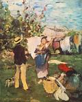 Pipacsos mező: Szinyei Merse 1895-től kezdve festett pipacsos tájképeket, melyekkel ifjúkori színálmait folytathatta. Mint az impresszionisták közül főként Monetnek, a magyar festőnek is feltűnt, hogy az élénk színű pipacsokkal teletűzdelt mezők piros-zöld kontrasztja fantasztikus vibrálást eredményez az arra járok szemében. A festményen rögzített tájat és alakot körülvevő levegő napsütötte remegése nem engedi kibontakozni az egyes részletek rajzosságát. Ily módon minden képelem - világító színereje ellenére is engedelmesen belesimulhat az egységes látvány harmóniájába. A tájhoz mindig elfogultságmentesen és alázattal közeledő művész legelső műveitől kezdve a képszerkezet tisztaságára és egyszerűségére törekedett. Hamar megtalálta a karakterének és gesztusainak leginkább megfelelő átlós kompozícióit, mely rejtett vagy nyíltabb formában, számtalan variációban sok művén, így a pipacsos képein is visszatér. Új bravúr, hogy a festő az ösvény kanyarodását követő virágok karéjának gyújtópontjába, a kép szélére helyezte a felfelé haladó figurákat, melyek így kis méretüktől függetlenül is uralják a természetet. Friss, impressziomista vázlata a "Ruhaszárítás." FeRENCZY KáROlY A nagybányai iskola stílusigazodását elsősorban Ferenczy Károly határozta meg. Ferenczy végigjárta a naturalizmustól a plein air festésen át vezető utat egészen a posztimpresszionizmus dekorativitásáig.