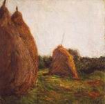 Fő művének, a számtalanszor variált "Rákóczi induló"-nak néhány vázlata a figurális impresszionizmus első sorába tartozik. Hollósy harmadik alkotói korszaka a kárpátaljai kis faluhoz, Técsőhöz kapcsolódik, ahol haláláig nyári művésztelepet tartott fenn müncheni tanítványainak. Fő műfaja ekkor a tájkép volt, melyben teljesen szuverénül, saját, temperamentumos egyéniségéhez igazítva használta fel az impresszionizmus formanyelvét. Egyik kedvelt témája volt a zöld mezőből kiemelkedő szénaboglyák sora. Éveken keresztül variálta a hol közelebbről, hol távolabbról szemlélt kúpokat. Nagyvonalú, izgatott ecsetkezelésével mindig pontosan adta vissza a táj karakterét. Tanítványainak mondta: "harmónia van a természetben - az atmoszféra színes, ezért az ég zöld, a mező meg lila reflexeket is kapott". A kiegészítő színpárokat pasztózus ecsetvonásokban fogta össze, hogy elkerülje a pointillizmus apró festékpöttyeit. Ezzel az eljárással az anyag tömegét, ugyanakkor a mindent beborító levegő remegését is érzékeltetni tudta. A természet konkrét tárgyias szemlélete a Hollósy számára mindig fontos lírai értelmezéssel párosult. Az itt látható festmény - Szénaboglyák, 1912 - az egyik legszínesebb ilyen képe. neoimpresszionizmus Az impresszionizmus módszerének a közvetlen bírálatát paradox mód az impresszionizmusból közvetlenül kinövő neoimpresszionizmus végezte el. A szakirodalom többféle elnevezéssel illeti ezt az irányt, legáltalánosabban neoimpresszionizmussal és pointillizmussal. A mozgalom teoretikus festője, Paul Signac és tulajdonképpeni megindítója, Georges Seurat. Céljuk mindenekelőtt a színeknek az elemeire való bontása.