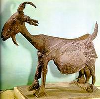 Picasso Nősténykecske szobra a maga tökéletes befejezettségében valójában egy "assemblage": 20. századi pop-art egyik technikája, melynek során a tárgyakat használatuktól eltérő környezetben helyeznek és kompozícióvá állítanak össze. A has vesszőkosárból készült, a szarvak szőlőtőkéből, a hátsó rész pedig egy lámpából. A "talált tárgyak", amelyek részei ennek a meghökkentő kompozíciónak csupán alakjuk révén tagozódnak bele, s nem anyagszerűségükkel: a művész páratlan ügyességgel álcázza őket. Picasso friss életerővel töltötte meg a szobrászatot, amit a fiatal szobrásznemzedék nagy lelkesedéssel fogadott.