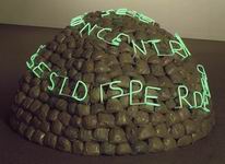 Objects Cache-Toi, vagyis Bújócska-tárgyak című telepítéseiben Mario Merz olasz művész mindenféle anyagból iglukat készített, melyek védelmet és intimitást (vagy pont ennek hiányát) fejeznek ki, s melyekre a művész neoncsövekkel írta fel a címet. Merz egy Arte Povera nevű irányzathoz tartozott, mely durva és olcsó anyagokat használt alkotásaikhoz a francia új realistákhoz hasonlóan, ám azoktól eltérően inkább a tárgyak mögött rejlő eszmére összpontosított. Első képen látható "Bújócska-tárgy" 1968-ban készült, anyaga fém, drótháló és textíliák, a betűk neoncsőből készültek. A Guggenheim Múzeumban látható 1989-ben készült Merz mű címe "Fantom város", anyaga üveg, tükör, fémcső, gumi, rőzse, agyag és kampók. Mario Merz 1979-es Sydney-i Biennálén kiállított művében egy élő piton is szerepelt volna, de a szervezők nem lelkesedtek az ötletért és ellenálltak.
