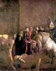 A művészettörténetben Caravaggio néven ismert Michelangelo Merisi. 1584 és 1608 között Simone Peterzano bergamói késő manierista művész mellett inaskodott. 1592- 93 táján Rómába költözött. Caravaggio azt vallotta, hogy egy jó virágcsendélet hatásos megkomponálása ugyanolyan művészi jártasságot igényel, mint az alakok festése; pályáját valószínűleg csendéletfestőként kezdte. A Gyümölcsöskosár feltehetően Del Monte bíboros megrendelésére készülhetett, 1596-tót Caravaggio ugyanis az ő házában élt. Az udvari emberek számára egy sor képet festett, amelyek lanton játszó, boros vagy virágos edényeket tartó, gyümölcsöskosarakat átnyújtó fiúk mellképeit ábrázolták. E művek közé tartozik az Önarckép fiatal Bacchusként és a Fiú gyümölcsöskosárral, a Zenés jelenet és a Bacchus 0203. Az alakokat egyszínű, de meleg tónusú háttér előtt ábrázolja. A kép felületén a festéket egyenletesen eldolgozta, a csendéletrészleteket pedig ragyogó színekkel festette meg, a felület és a textúra pontos, eleven. Ugyanakkor árnyalatnyi bizonytalanság lelhető fel az alakok térbeli elhelyezésénél. Noha zsánerképekről van szó, ezek mégsem realista alkotások. A fiúkból bágyadt, közönyös elegancia árad, fiatalságuk tiszta szépsége pedig keveredik a kevésbé ártatlan élvezetekben való nyilvánvaló jártasságukkal. Az itt még rejtett erotika a maga leplezetlen valójában nyilvánul meg a Győzelmes szerelemben. Caravaggio 1598-tól kezdett oltárképeket festeni. Legfontosabb megbízatásai római tartózkodásának hátralevő éveiben a Máté életéből vett jelenetek, a Szent Pál megtérése és a Szent Péter keresztre feszítése, a vanicellai Santa Marfia-templom számára 1602ben megkomponált festménye, a Krisztus sírba tétele és a Mária halála, amelyet a trasteverei Santa Marria della Scala-templom részére festett 1602 - 1604 között. Ezekben a művekben Caravaggio különös és eredeti vallásos stílust hozott létre, amelynek sajátossága a nézőre gyakorolt meghökkentő és közvetlen drámai hatás, valamint az emberi természet összetettsége és szenvedései iránt érzett mély együttérzés mindkettő új vonás volt a festészetben. A Contarelli-kápolnában látható olaj-vászon festmények három részből állnak. A középső kép Máté és az angyal, míg a két oldalszárny Máté elhívatása és Máté mártíromsága. Ezek a művek fordulópontot jelentettek a 17. század művészetében. Caravaggio témáihoz a valóság, a mindennapok felől közelített, alacsony társadalmi helyzetű modelleket alkalmazott A Máté és az angyal-oltárkép (egykor: Berlin, Kaiser-Friedrich Museum, elpusztult) első változatát az egyház vissza is utasította, mert illetlennek találta. A szentet ugyanis tagbaszakadt parasztként ábrázolja, akinek piszkos lába szinte a képből kilépve a néző orra elé tolakodik. A végleges változat sokkal hagyománytisztelőbb volt. A Máté elhívatása nyomorúságos helyszínt és távolról sem hősies alakokat jelenít meg; a szent és rikítóan közönséges ruhákba öltözött társai kártyaasztalnál ülnek egy római palota udvarán. Bonyolult lélektani reakcióikat, amelyekkel Krisztus megjelenését fogadják, életteli realizmussal ábrázolja a művész. A Raffaello idealizáló képeihez szokott közönség számára ezek a képek érthetően meghökentőek voltak. Caravaggio fokozatosan felhagyott korai műveinek egyenletes, a formákat kiemelő megvilágításával, és alakjait félhomályba kezdte helyezni, amit éles fénysugár világított meg. A fényárnyék hatásokat műtermében dolgozta ki: a fény és árnyék egyszerre drámai és poétikus ellentétével mélyen spirituális légkört teremtett. A plebejus jellemek, az erőteljes helyszínek és a szűk tér más műveiben is megjelenik. A Mária halálában a Szűz felpüffedt hulla. Bár a karmeliták elutasították "ízléstelensége" miatt, a kép megindítóan komor és ünnepélyes. A drámai hatásokat fokozzák a széles gesztusok, amelyek szinte áttörik a képsíkot és egybeolvadnak a nézőével. A Szent Pál megtérésében a szent a lova lábainál hever; döbbenetes, erős rövidülésben ábrázolt teste és szétvetett karjai arra szolgálnak, hogy a szemlélőt bevonják a drámába. Pál szemei csukva vannak, és a megtérés belső énjében megy végbe; a természetfeletti hatalmak külső, látható megjelenését hiába keresnénk a képen. 1606-ban Caravaggio egy verekedés során gyilkosságot követett el, ezért el kellett menekülnie Rómából. 1607-ben, Nápolyban tevékenykedett; itt készült legfontosabb művei Az irgalmasság hét cselekedete és a Jézus megostorozása. Előbbit az érzések emberi melegsége és a kompozíció meghökkentő szabadsága, utóbbit pedig a komor brutalitás jellemzi. 1607 - 1608-ban Caravaggio Máltán tartózkodott, ahol a Jeruzsálemi Lovagrend nagymestere megbízta Keresztelő Szent János lefejezésének megfestésével a valettai Szent János-székesegyház számára. Miután összeütközésbe került a máltai hatóságokkal is, előbb Szicíliába menekült, majd visszatért Nápolyba. 1610-ben, útban Rómába megbetegedett és a láz végzett vele. Szicíliában még megfestette Szent Lucia temetését, Lázár feltámasztását és a Gyermek Jézus Szent Ferenccel és Szent Lőrinccel című képét. Forrás: Studiolo 1.3.1. |