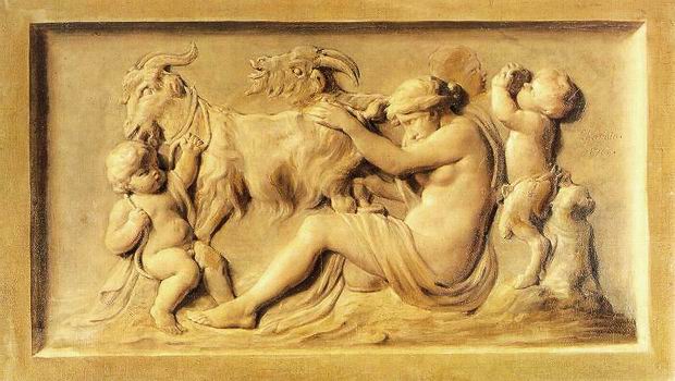 kecskét fejő bacchánsnő