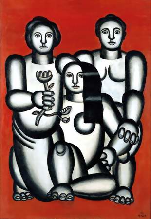 Három nő piros háttér előtt