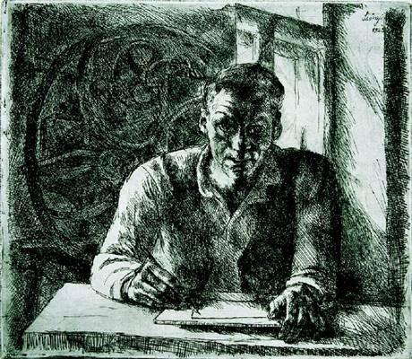 Rézkarcoló önarckép a préssel