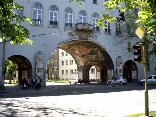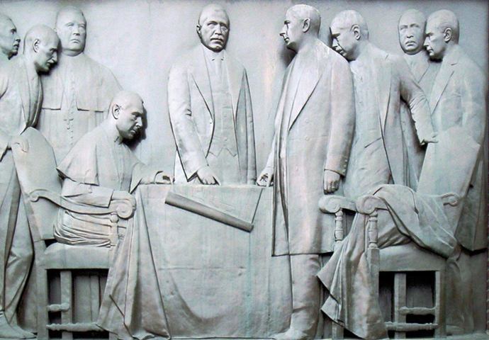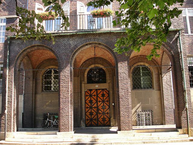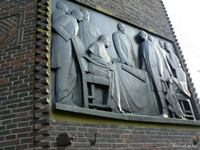 A Szentgyörgyi István által készített bronz alkotás a palota kémiai intézetének falát díszíti. A dombormű a kolozsvári egyetem Szegedre telepítését és az ennek nyomán meginduló építkezések emlékét őrzi. 1930-ban már kész volt. A művész szerepeltette a Szinyei Társaság őszi, jubileumi tárlatán. 1931-ben öntötték bronzba, májusban szállították Szegedre. A domborművön szereplő személyek balról jobbra: Korb Flóris építész, Gaál Endre kultúrtanácsnok, Várhelyi József a dóm első plébánosa, Glattfelder Gyula megyés püspök, Somogyi Szilveszter polgármester, Klebelsberg Kunó kultuszminiszter, Áigner Károly főispán, Tóth Károly rektor, Rerich Béla építész.