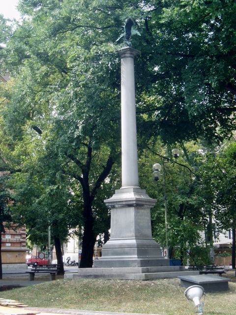 Az emlékoszlop a szegedi egyetem természettudományi karának dékáni hivatala, a volt piarista gimnáziumot és rendház előtt áll. Az eredetileg honvéd emléknek indult alkotás kezdeményezője Széll György, a Honvéd Segélyező Egylet elnöke volt. A szőregi csata (1849. augusztus 5.) negyvenhetedik évfordulójára elkészült emlékművet színpompás fölvonulással kísérve, az életben lévő negyvennyolcas honvédek jelenlétében avatta Fluck Ferenc, a szoborbizottság elnöke. Tetején a millenniumi - ágyúgolyót karmai között tartó, kiterjesztett szárnyú bronz turulmadár a bátorságot, a nemzeti akarat legyőzhetetlenségét szimbolizálja. Köllő Miklós alkotása 1896-ból. Az emlékmű mészkő talapzatra helyezett, posztamensen álló toszkán oszlop szürke gránitból; a talapzaton Bajza József sorai olvashatók: "Csatájuk a védelmezett - Népjog csatája volt" - tövében az Aradon vértanúhalált halt tizenhármak névsorát márványtábla örökíti meg. Az emlékmű magassága 9 méter.