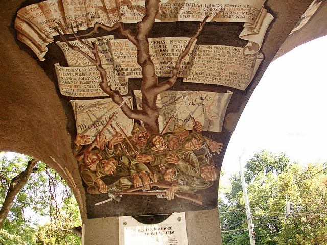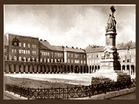 Aradi vértanúk tere - gimnázium 1886 és kattintásra épülete ma - alapítók dombormű