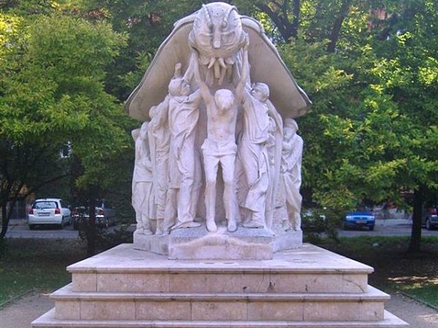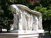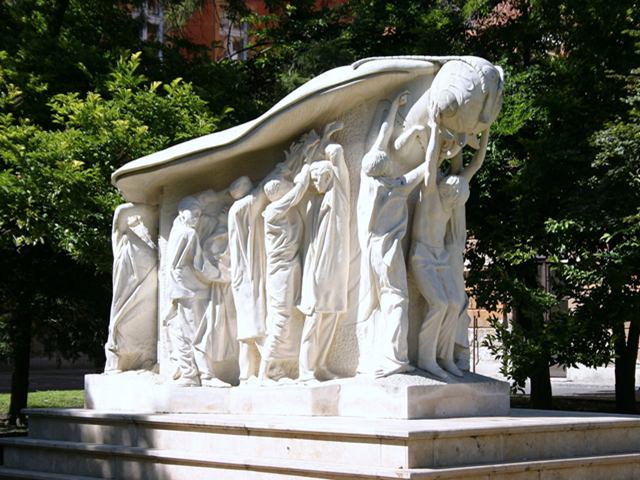 A tér másik oldalán különös márványszobor áll, hatalmas, csukott szárnyú pillangó testét küszködve a magasba emelő embercsoport. Melocco Miklós 1997-ben fölavatott, több mint húsz, faragott figurából álló, szimbolikus mészkő műalkotása az 1956-os forradalomnak állít emléket. A mű azt ábrázolja, hogy a szabadság lepkéjét, a kérészéletű forradalom jelképét 19 ember hordozza a vállán. 1956-os fiatalok, drága halottak, megtért disszidensek, túlélő barátok. Valóságos emberekről mintázta az alakokat, köztük van az ifjú Latinovits Zoltán, Mansfeld Péter - akit 18. születésnapja után 11 nappal végeztek ki, a szegedi forradalom mártírját - Danner Jánost is megörökíti, köztük van a szobrász is, aki 1956-ban volt fiatal, s még sok más ismerős arc. A lepke szárnyain Illyés Gyula Egy mondat a zsarnokságról c. költeményének sorait olvashatjuk.