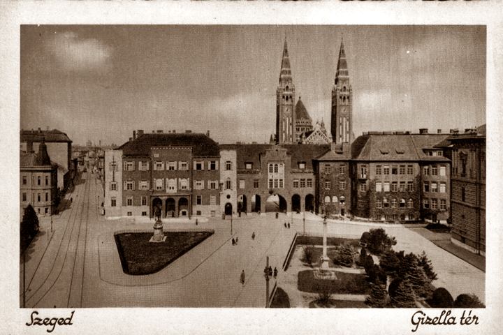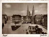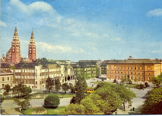 Képek és képeslap: Aradi tér 1967-68 és ma (2 kép); Gizella tér egykor; Rerrich Béla tér ma; Rákóczi szobor régen (Széchenyi tér) és ma (2 kép); Rerrich Béla tér és Dóm tér közötti kapu ma; Dóm tér panoráma régen és ma (2 kép); Dóm tér Dömötör toronnyal régen; Fogadalmi templom régen és ma (2 kép).