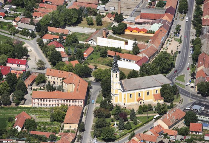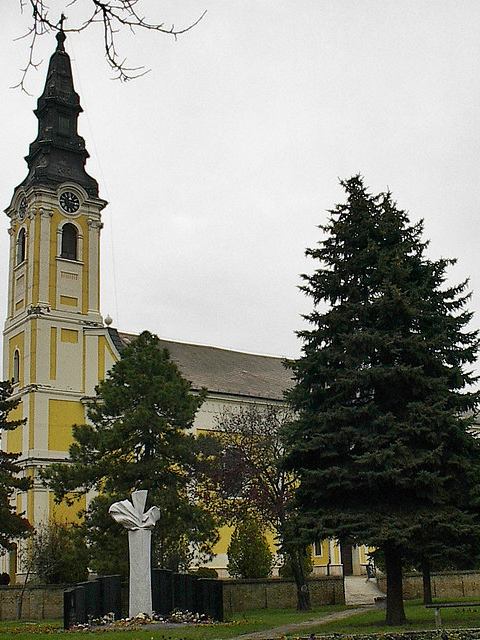 A környezetéből kiemelkedő löszháton épült a szerbek első kőtemploma. A népi emlékezet szerint ezen a helyen állt korábban a fából épült ortodox templom is. A mai templom titulusa mint az előzőé: Kisboldogasszony ("Isten anyjának születése"). A löszháton mesterségesen fölmagasított templomdombot 1,5 - 2,5 méter magas téglafal övezi. A domb két oldaláról nyílik vasrácsos kapun át följárat. A latin kereszt alaprajzú templom hossza 26 méter, szélessége 9 m (a szinte csak jelzésszerű kereszthajónál 9,60 m), a párkány magassága 8 m, a tetőgerinc 13 m, a torony 29 m magas. A kelet-nyugati tájolású épület főbejárata a nyugatra néző torony alatt nyílik. A kőkeretes, szépen díszített ajtó fölött vakolatból mintázott timpanont találunk. A hangsúlyos koronázó párkány fölött attikaszerű mellvédfal nyúlik föl a torony alsó harmadáig. A főhomlokzatot és a tornyot is erőteljes lizénák keretezik, melyeket a vakolatba mélyített vízszintes osztásokkal tagoltak. A torony félköríves ablakait hangsúlyos - az 1992-i festéssel szépen kiemelt - keretezés díszíti. Rendkívül mozgalmas a barokk toronysisak, melyet 1992-ben ismét vörösrézzel borítottak. Az oldalhomlokzatokat az ablakok kiosztásának megfelelően szintén lizénák tagolják. Az oldalbejáratok kis kiugró kapuépítményekből nyílnak. Itt a legszélesebb a templom (12,30 m). A kőkeretes ajtók a főbejárathoz hasonlóan vannak díszítve. Az egyhajós, négy osztatú templom szentély előtti utolsó negyede mintegy 60 centiméterrel kiszélesedik (kereszthajó). A csehsüveg boltozatokat hangsúlyos hevederívek választják el, s a főpárkány magasságában keresztvasak erősítik. A boltozatok négy sarkába ovális keretekben szentek képeit festették, a hevedereket virágmotívumokkal, míg a boltozatokat kék alapon szórt arany csillagokkal díszítették. A főbejárat fölötti (újabban beüvegezett) karzatot, a fölötte emelkedő tornyot három erőteljes, félköríves boltozat tartja. Korábban itt állt a keresztelőmedence. A falakat szentek képei s templomi zászlók díszítik. 1785-ben épült, 1848-ban leégett, újjáépült 1850 körül. Felújították 1912-ben. Az ikonosztázion zöme is az 1912. évi renováláskor készült. Négy sorban helyezkednek el a keretbe foglalt szentképek. Az alulról a második, a fősorban ovális keretben balról: Szent Miklós, majd az északi ajtón Szent István, tovább Szűzanya a kisdeddel, a szépen faragott királyajtón Szűz Mária, Gábriel arkangyal (az örömhírvétel) s tovább Jézus Krisztus, a déli ajtón Mihály arkangyal, végül Szent János képe van. A királyajtó fölött (alulról a harmadik sorban) az utolsó vacsora ábrázolását helyezték el. Ettől balra Jézus születésének és megkeresztelésének még a régi ikonosztázból megmaradt 8. század végén festett képei találhatók. Továbbhaladva Jézus föltámadásának jeleneteit, míg jobbra az Úr napja, az apostolok és ismét a föltámadás képeit láthatjuk. A negyedik, a legfelső, a szentek sorában középütt a Szentháromság, s többek között Szent Demeter és Szent Lázár képeit helyezték el. Az ikonosztázion legalsó sorában pedig az ószövetség, Izsák próféta és Káin történeteit láthatjuk. A királyajtó előtt baldachin áll. Az ikonosztázion jobb oldalán szépen faragott püspöki szék áll. Az ikonosztázion mellett az egyik oldalon Aranyszájú Szent Jánost, a másikon Szent Miklóst ábrázoló táblaképek érdekessége, hogy festőjüknek, a szegedi Nagy Ferencnek neve cirill betűkkel van ráírva (1843).