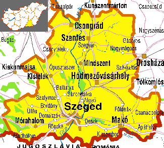 Szeged Csongrád megye székhelye, a Dél-alföldi Régió központja, Dél-kelet Magyarország legnagyobb települése, 169 ezer lakossal. a Tisza és a Maros folyók összefolyásánál helyezkedik el. Az ország legmélyebben fekvő városa. Szeged déli részén, Gyálaréten, a szerb határ közelében található az ország legmélyebben fekvő pontja, 75,8 méter tengerszint feletti magasságon. Közúton Budapesttől az M5-ös autópályán 165 km távolságra - kényelmes autózással - másfél óra alatt érhető el. Vasúton az elegáns, kényelmes és gyors Inter City járatokkal Budapesttől csak kettő és egynegyed órányira van. A frissen átadott - kis és közepes gépek fogadására alkalmas - repülőtér Magyarország mellett a világ vérkeringésébe is bekapcsolta Szegedet és térségét. A mai Szeged magva tulajdonképpen három sziget: Alszeged, Felszeged és a Vár a Palánkkal. Ezek a mai Alsóváros, Felsőváros és a Belváros.