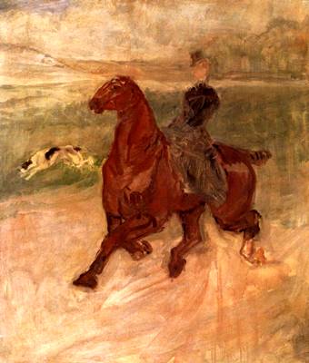 Lovagló nő és kutya