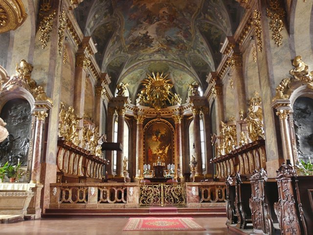 Loyolai Szent Ignác Bencés templom homlokzata - épülete - belső - szószék