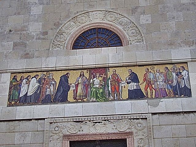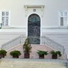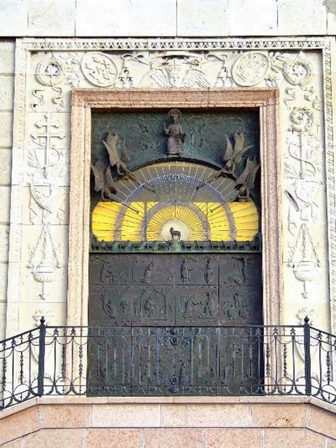 másik bejárat a bazilikába - páva és bronzkapu - szociális otthon - Szent Mór szobor