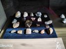 Képek: az első kiállító pavilon épülete, megkövült falevél, növénylenyomatok a mésztufában, hétszög alakú mésztufa épület (kiállító pavilon - 2 kép), őskőkori orrszarvú fogai, ősbölény állkapocs és lábnyom, ősmedve állkapocs, ősember lábnyoma, ősszarvas állkapocs, megkövült őskori medvenyom, út táblával - az előember-koponya felé ( 2 kép), előember-koponya részlet, őskori telep parkja (2 kép), Klári és Medex séta közben, sétány padokkal, őstelep védett növényvilága (2 kép), útelágazás táblával, Turul madár, Emléklap,  Tatabánya látképe a Kő-hegyről (2 kép), ketten - Dalos és Zsófi, négyes fogat - Klári, Femis, Bambusz és Dalos .
