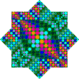 Vasarely kedvelt és gyakran használt motívuma volt a félgömb, ugyanakkor az 1970 körüli éveket a "hódolat a hatszögnek" címmel is jellemezhetjük. Vasarely így írt erről: Ez a négyszögtől oly különböző forma, mely tökéletesen zárt a maga struktúráján belül, nem engedelmeskedik a sík paralellizmus törvényeinek. Érdekes módon ez a hatszög hamarosan kockává is változott, méghozzá perspektivikus, labilis, úgynevezett Kepler-kockává. Ugyanis három egyenlő nagyságú rombuszra osztható. Ezeket a rombuszokat csupán ki kellett színezni, s a kocka már előttünk is áll, egyre szaporodik és újabb sejthálózatot teremt... A struktúra ezzel egy csapásra dinamikusabb, de vizuális értelemben labilisabb is lett. Valójában hipotetikus perspektívák egymásra montírozásáról van itt szó: minden elem beleviszi a maga ambiguitását, így aztán a kinetizmus jelen esetben roppant bonyolulttá válik. Úgy is mondhatnánk, szemfényvesztő perpetuum mobilét hoztam ezzel létre. Az Egyetemes struktúrák (négyzettel 1969-től, hatszöggel 1971-től, nyolcszöggel 1972-től) mintegy korábbi kísérleteinek összesítését adják. A harmadolt hatszög - optikailag - kockává alakul, mely hol pozitív, hol negatív, kiemelkedik vagy bemélyed. Ezzel új látszatot ér el a sík plasztikus láttatásával. |
